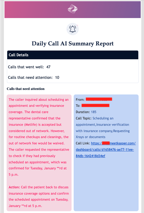 Kasper’s Call Intelligence is a powerful AI-driven feature designed to enhance your productivity by providing detailed insights into your calls.