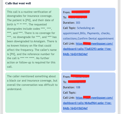Any call lasting more than 30 seconds undergoes analysis by Kasper Call AI. The analysis encompasses: