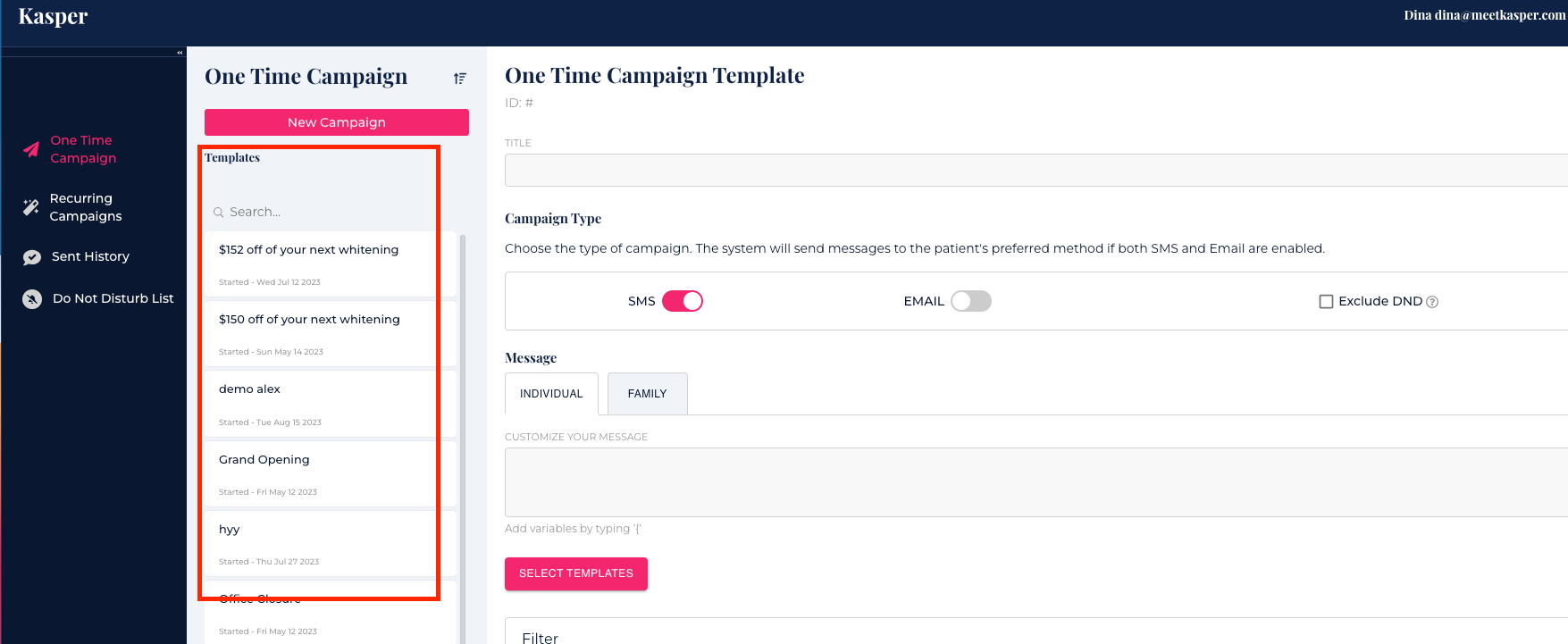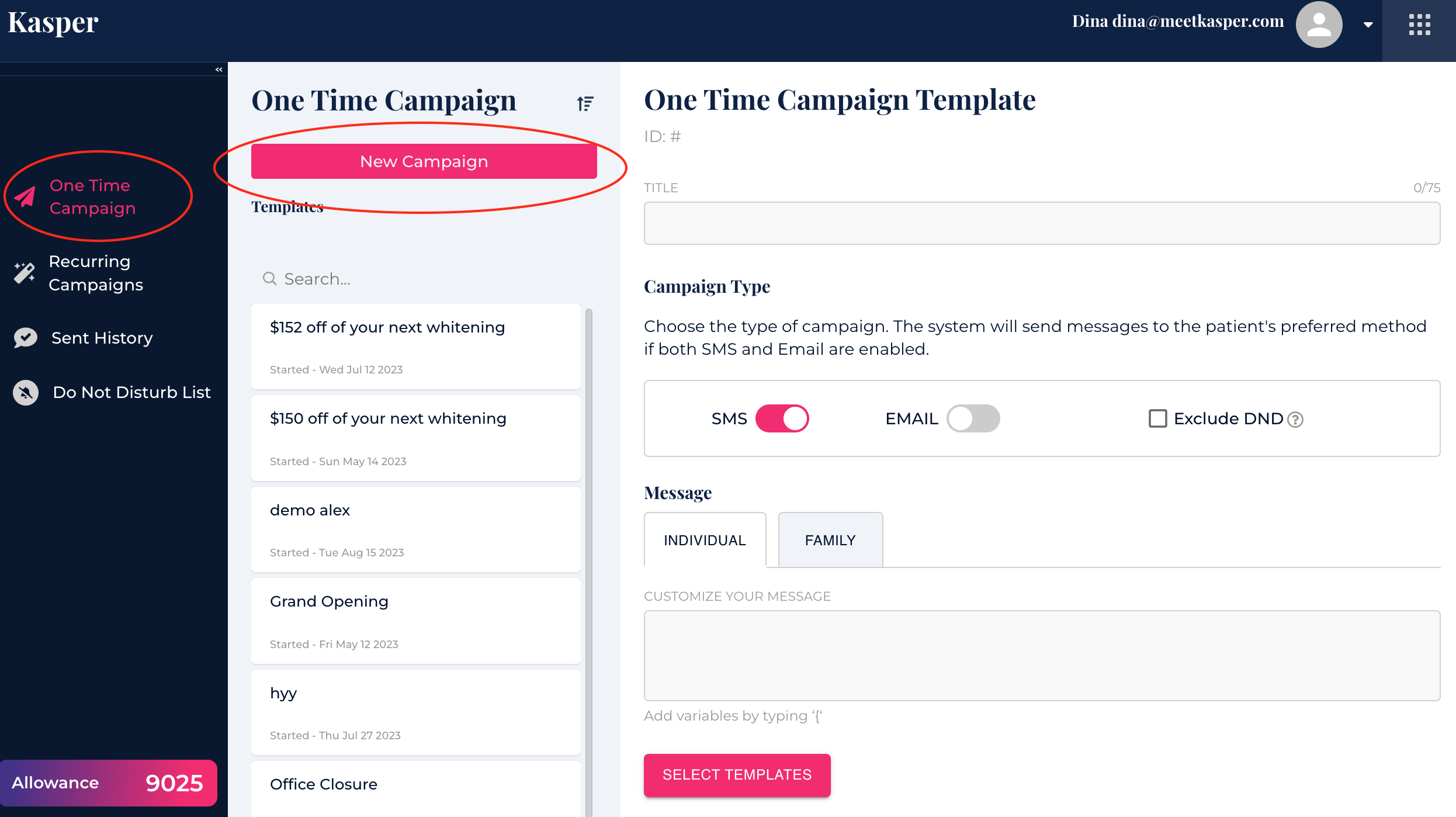 To create a new One Time Campaign, click on New Campaign