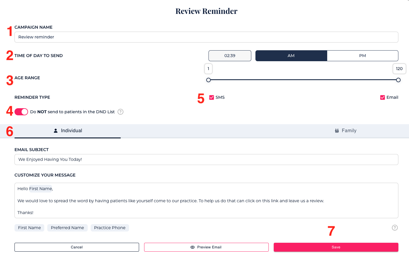Customize your message the way you want. Don't forget to customize a message for Individual and for Family. Make sure to add your review link in the body of the message.