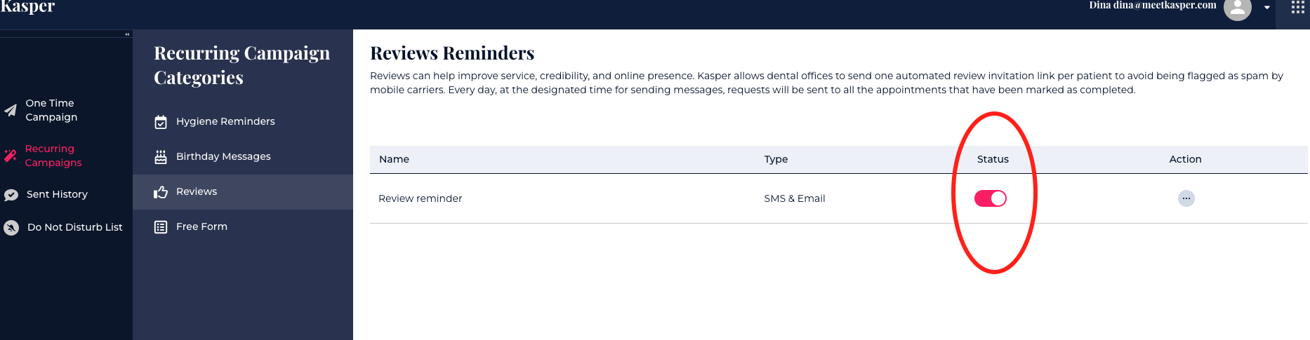 Reviews Reminder Campaigns are a type of Kasper recurring campaigns.