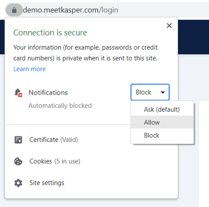 In order for Kasper to keep you alert & to use functions such as VoIP, you need to give some permissions from your browser.