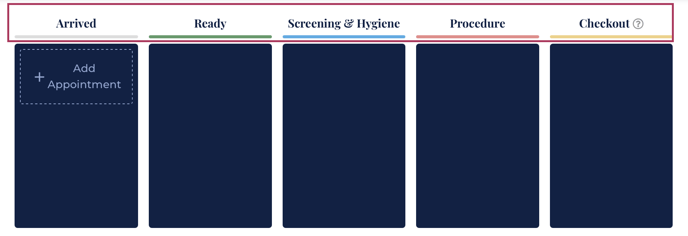 Highlighted in Red are the status names that Kasper uses to allow to keep track of a patient's visit. These statuses can also correspond to a patient's status in Open Dental however you are required to set this up via the Patient Sync feature on Kasper.