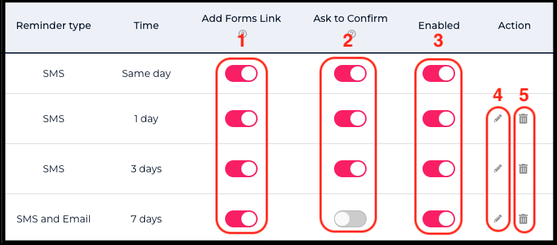 Include Links to Forms: Decide which reminders should contain links to forms. If a patient has already filled out forms from one reminder, forms won’t be sent in subsequent reminders.