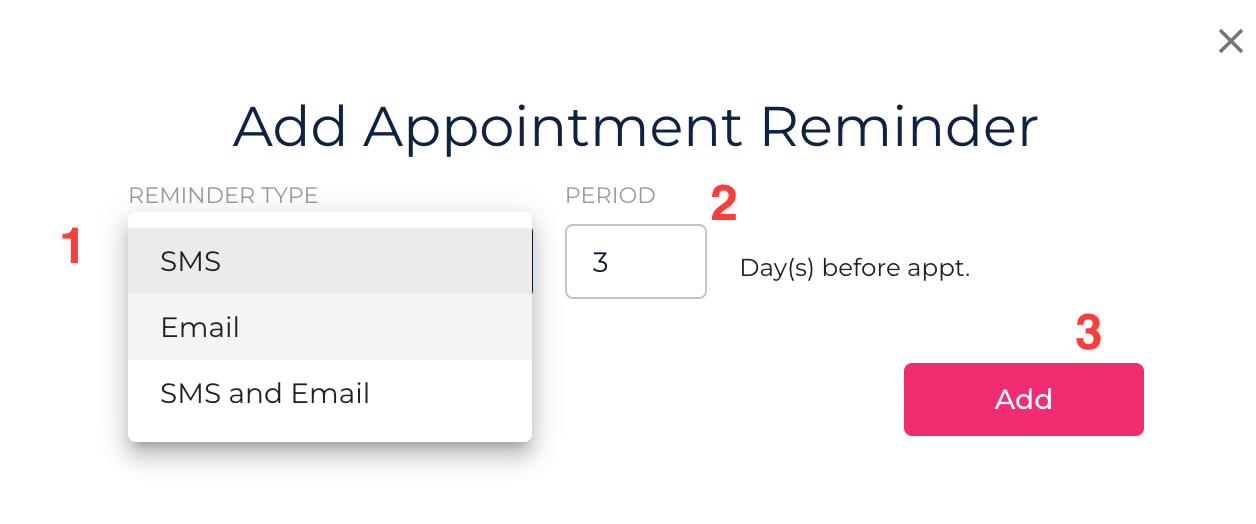 Same-day reminders: Sent a certain number of hours before the appointment.