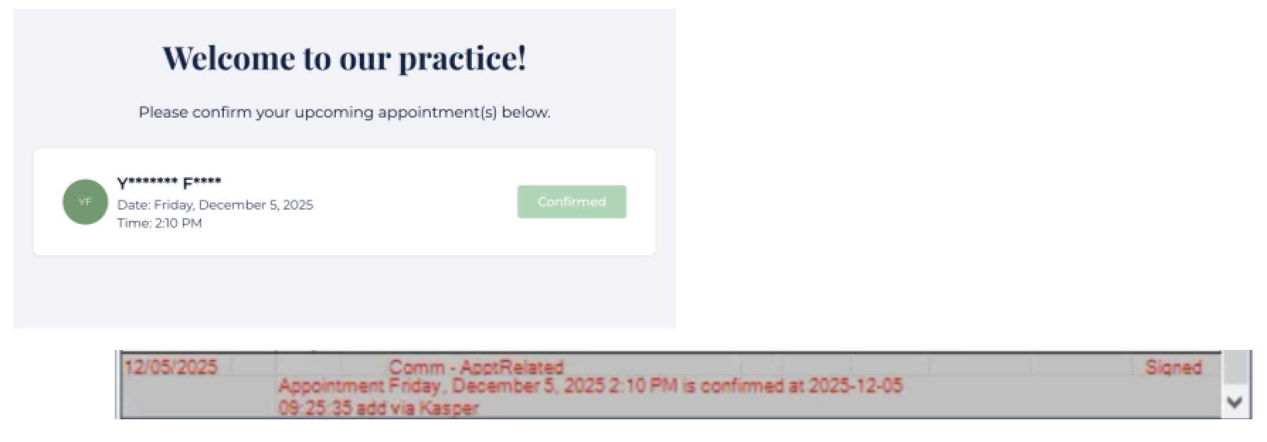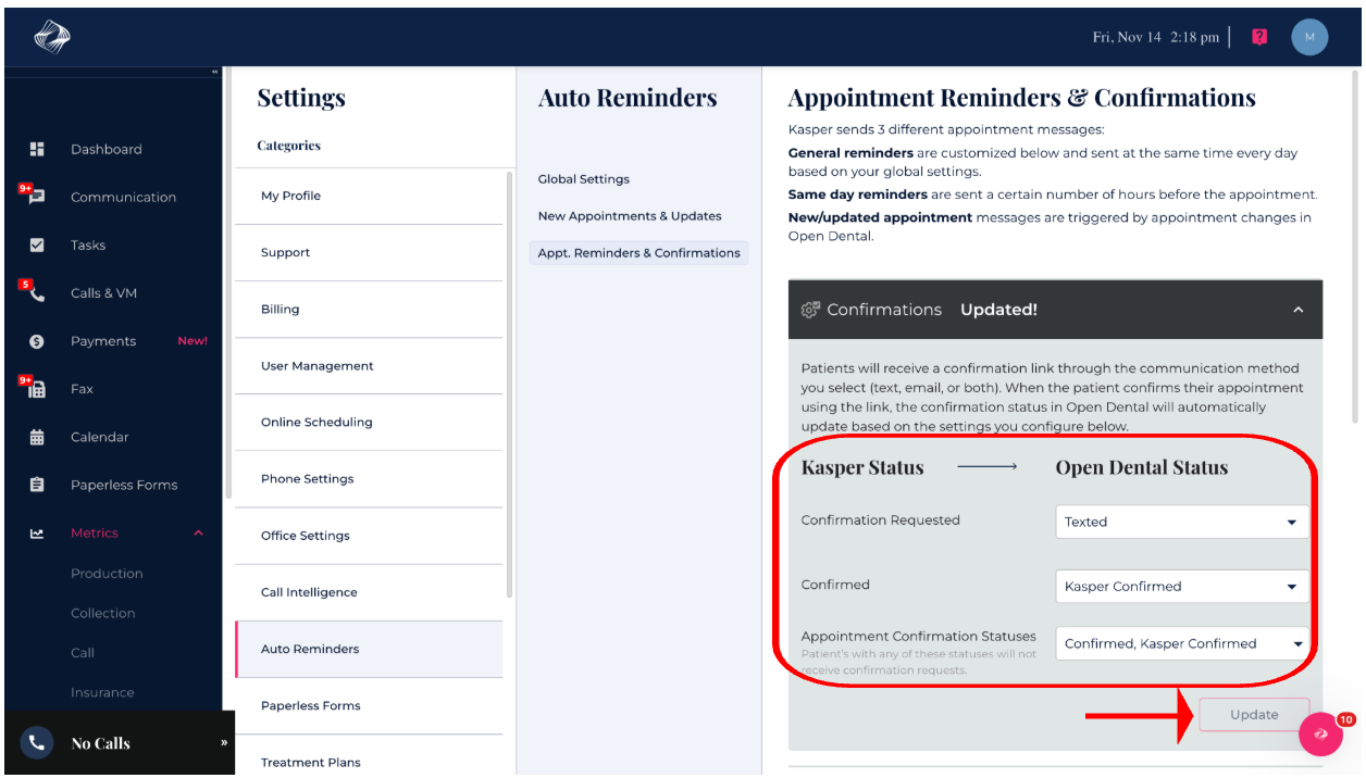 Kasper automatically updates appointments in Open Dental when a patient confirms via a link sent through SMS.