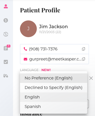 You can review or update a patient’s preferred language directly from their profile in the Communication tab.