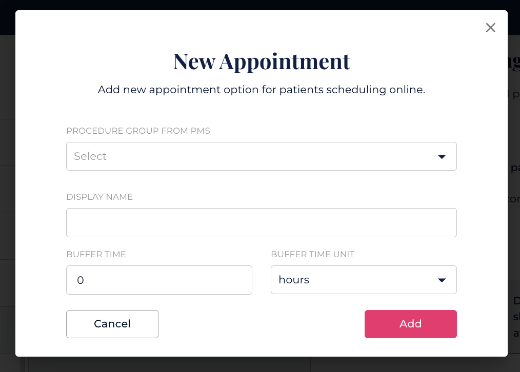 Note: If appointment types are not populating here, you may have not set these appointment types in Open Dental. Click here to see how to set this up.
