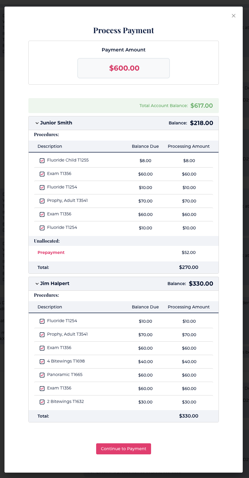 Patient Balance → Applied to the patient’s outstanding procedures.