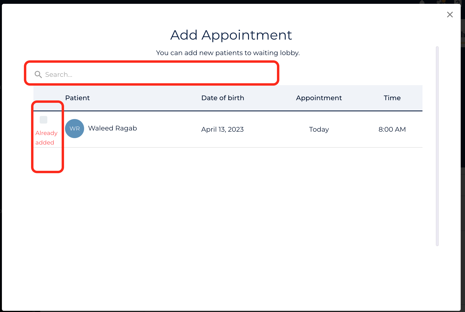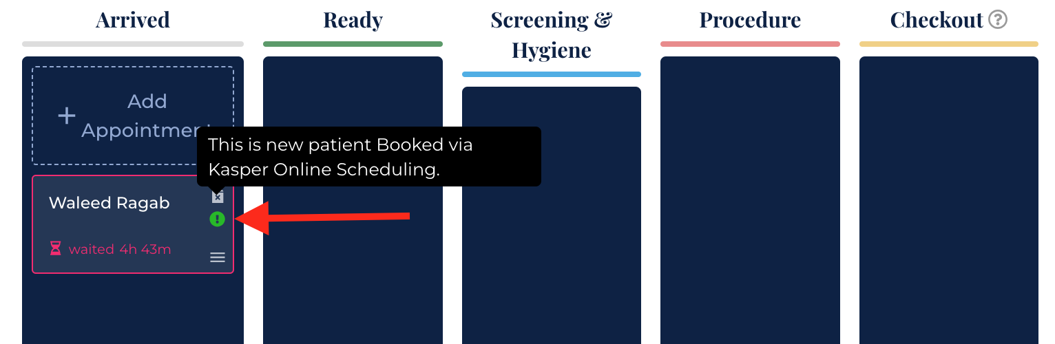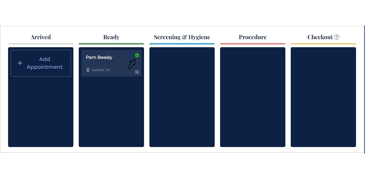 If a patient’s forms are complete a green checkmark will appear beside their name on the appointment card.