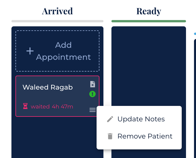 Note: Patients can automatically be moved to the "Ready" status if the forms are completed once they've arrived please click here to see how this can be done.