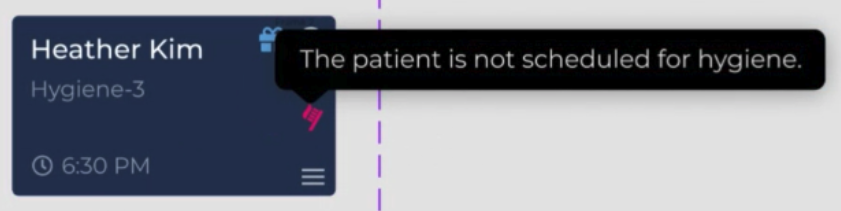 Flashing Red Tooth Brush Icon: Signals a patient overdue for hygiene with no future appointment scheduled.