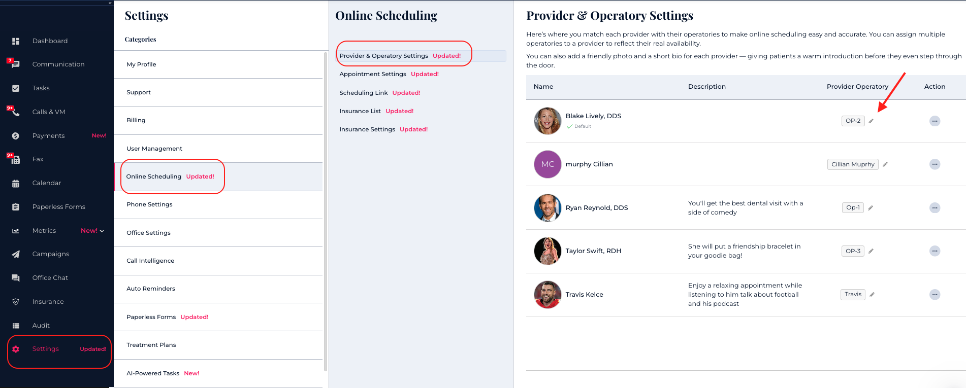 Go to Settings > Online Scheduling > Provider & Operatory Settings.