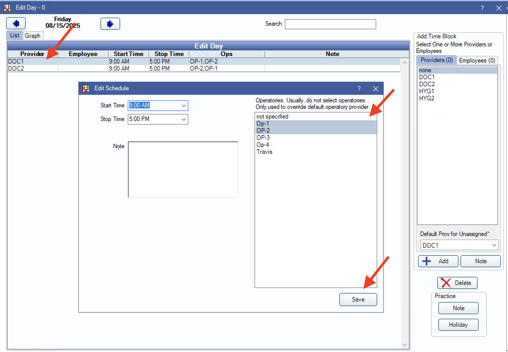Add the Operatories to the provider’s schedule.