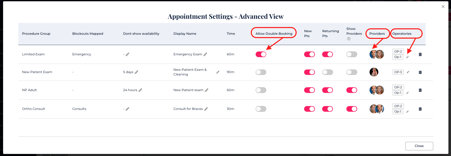 Multi Operatory Per Provider Scheduling