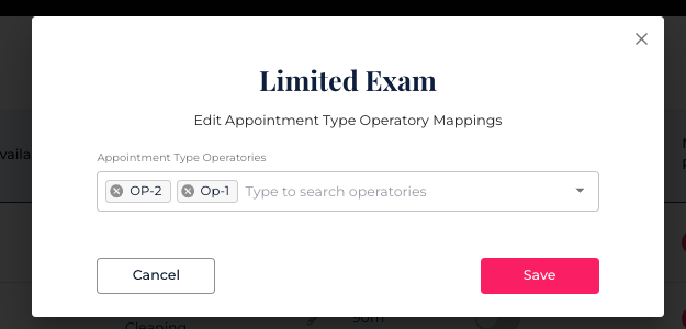 Note: The Operatory list here only shows Operatories linked to the providers assigned to this appointment type (from Provider & Operatory settings). If you don’t see the operatory you need, make sure it’s linked to the provider first.