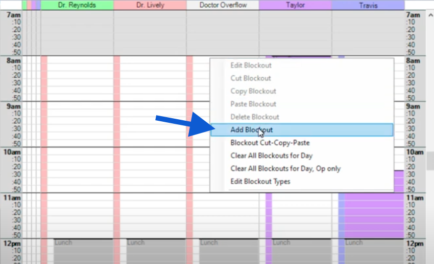 Right-click, then select Blockout Cut-Copy-Paste to replicate Blockouts across multiple days or weeks.