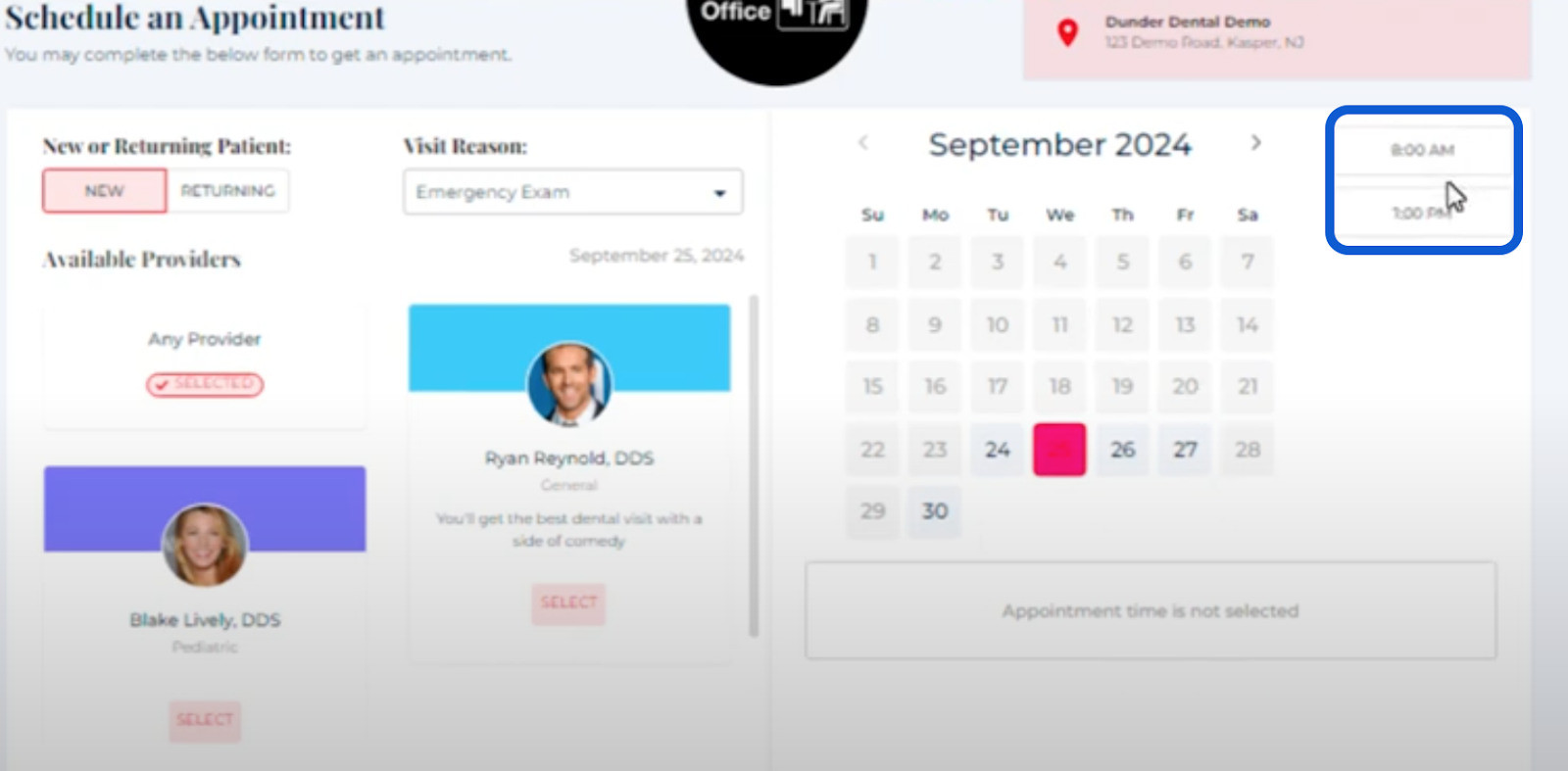 Kasper's block scheduling feature enhances the efficiency of your online scheduling process by allowing you to customize appointment availability in the Kasper online scheduler to meet the specific needs of your practice. This ensures that patients can only book appointments during the time slots you designate. For instance, if you prefer to schedule new patient exams at specific times—such as early morning or immediately after lunch—block scheduling enables you to set these preferences accordingly.