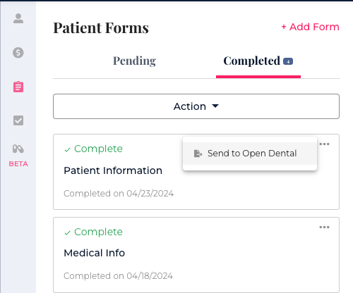Click the "send to Open Dental" button, and the form will sync accordingly.