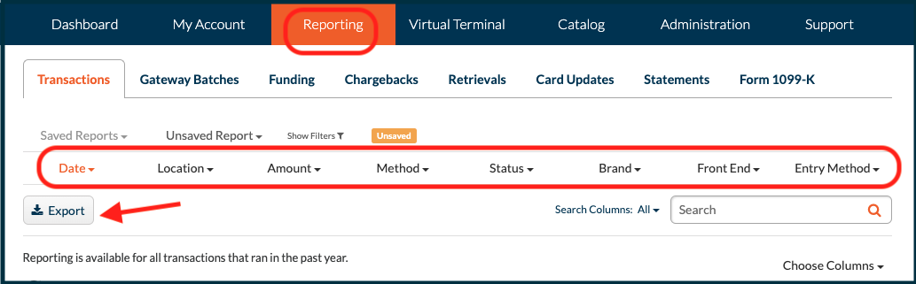 Navigate to Reporting tab