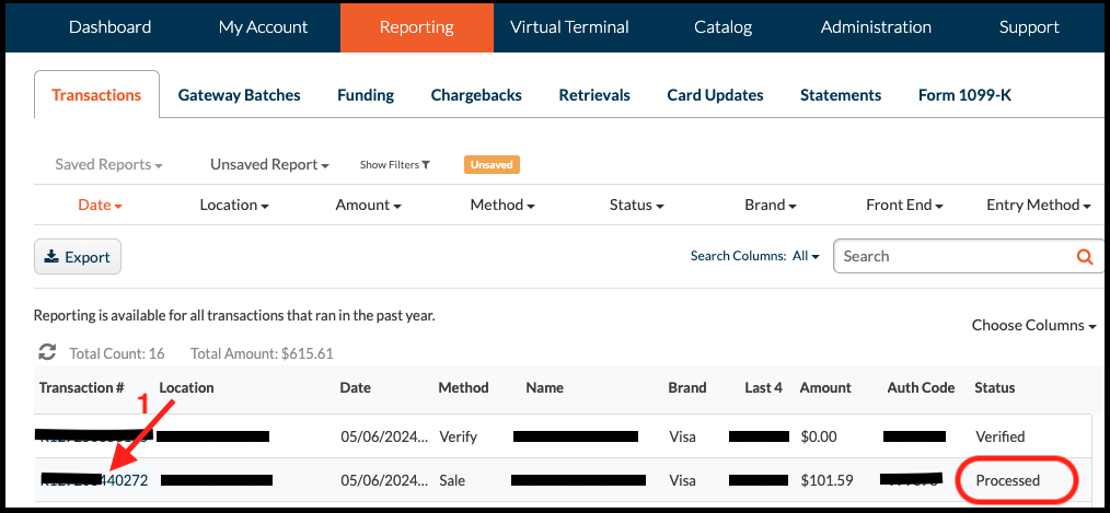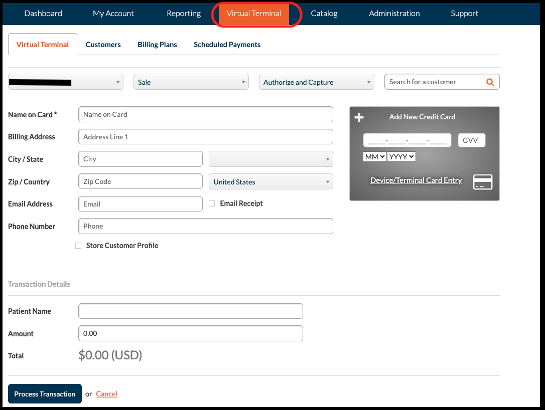 Navigate to "Virtual Terminal" tab