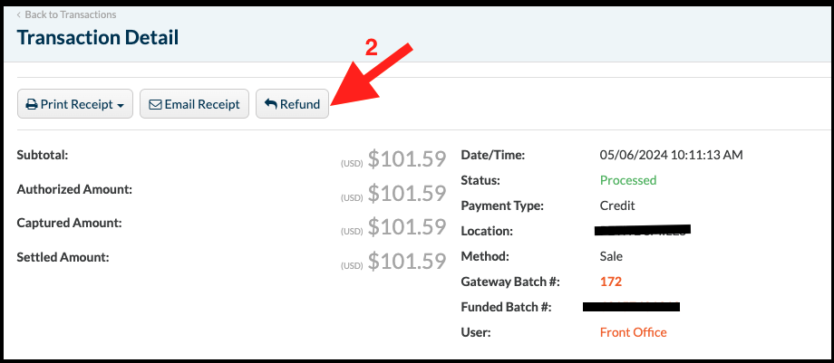Select the transaction you want to refund