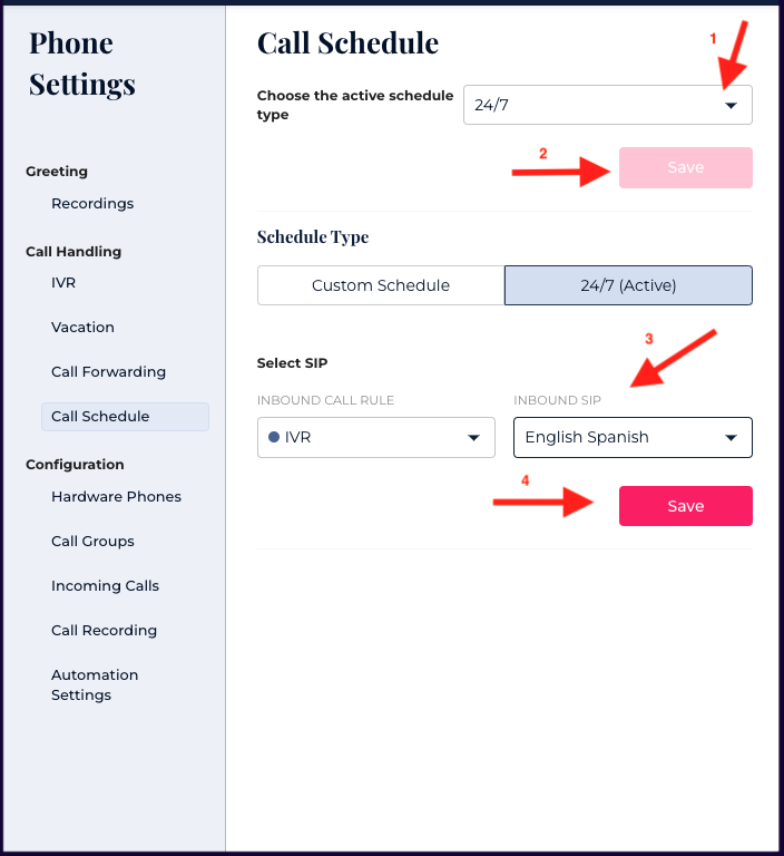 12. Switching to 24/7 Schedule: If you ever need to switch to a 24/7 schedule, simply select the option from the menu and save your changes. This will override the rotating schedule and set your office to be available round-the-clock.