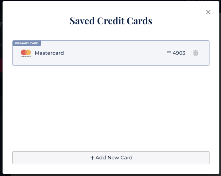 Once the payment is processed, the card used for the transaction will be saved automatically.